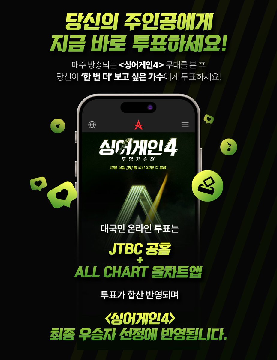 - #싱어게인4 #대국민투표하기 해시태그로 SNS 응원글 남기기 💬